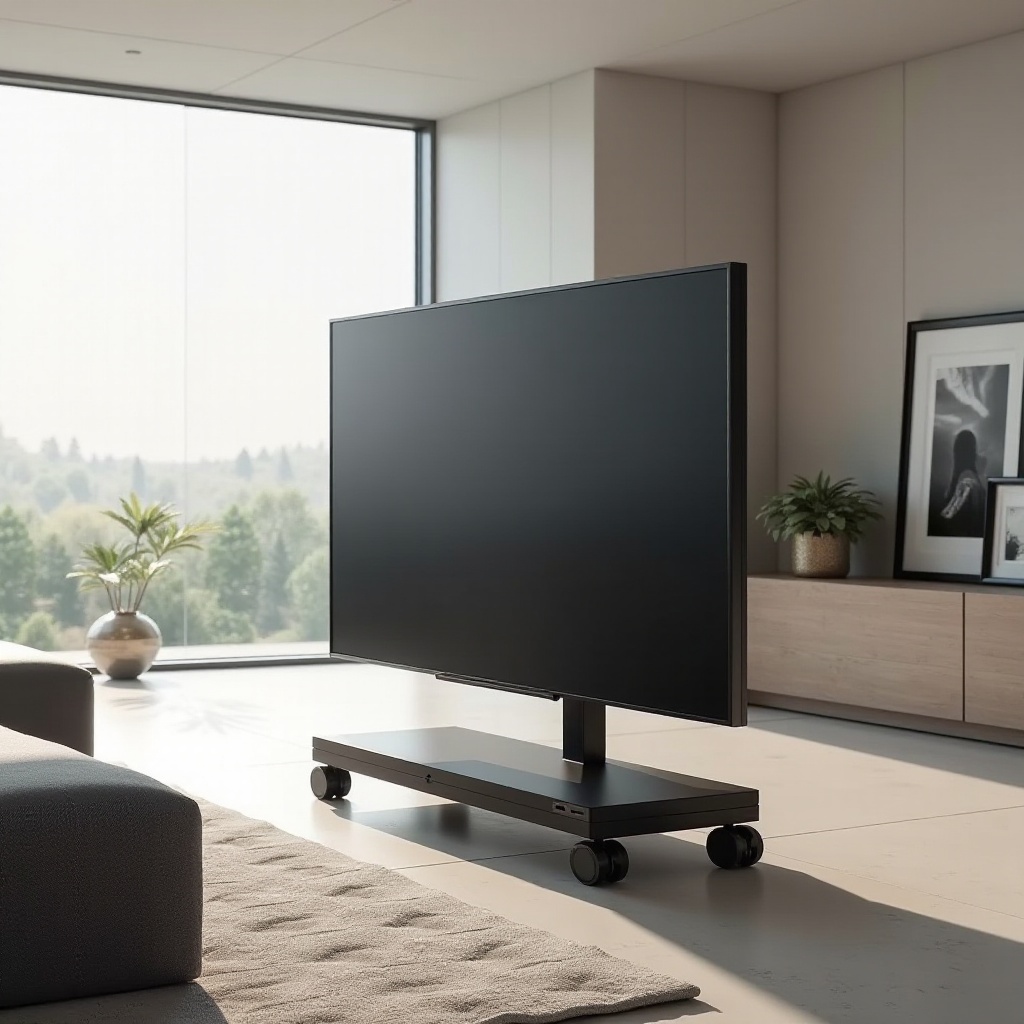 Kurulum İpuçları: Tekerleklerin güvenli olduğunu ve TV’nin stabil kaldığını kontrol ederek üretici yönergelerini takip edin; istenmeyen hareketleri önlemek için tekerlek kilitlerini kontrol edin.