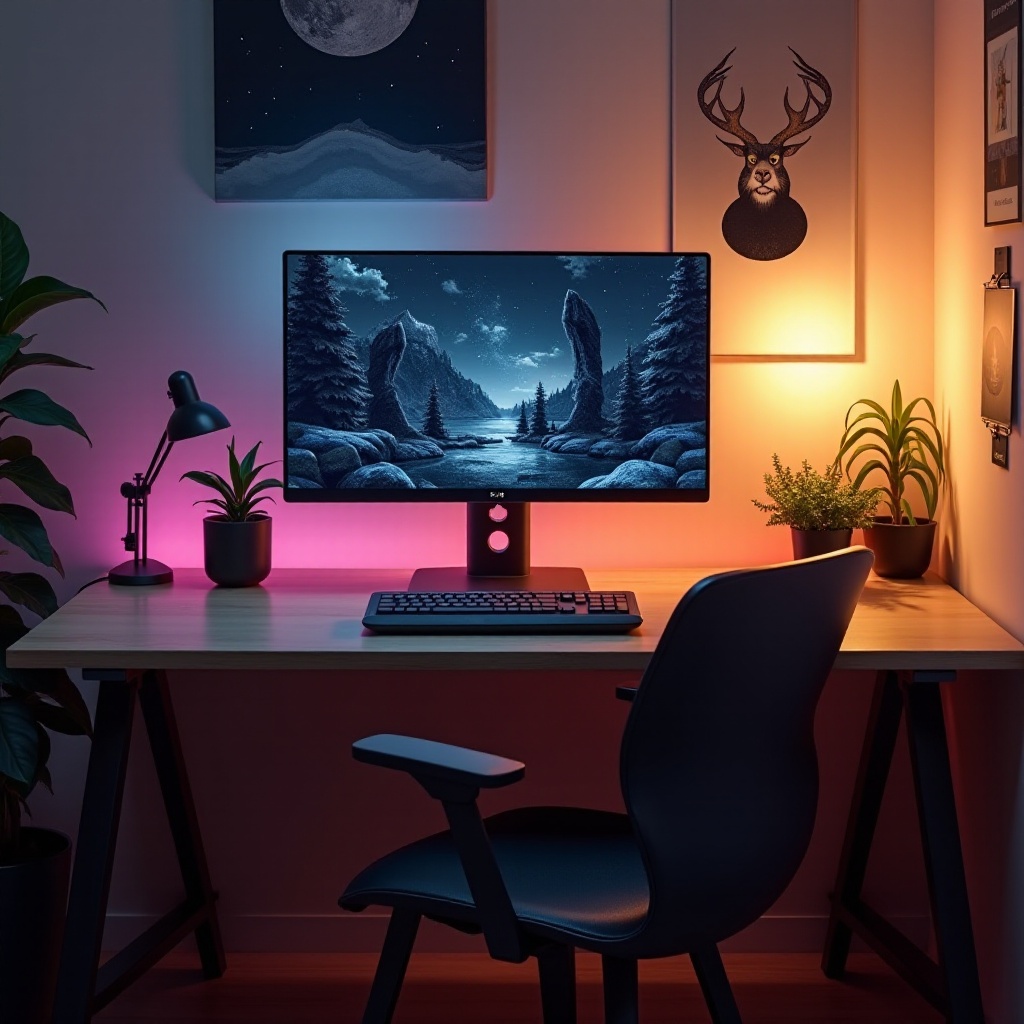 Inkorporacja Oświetlenia: RGB i Nie Tylko: Oświetlenie tworzy nastrój. Eksperymentuj z oświetleniem RGB dla dynamicznego klimatu lub postaw na bardziej miękkie, ambientowe oświetlenie dla bardziej zrelaksowanego środowiska. Personalizuj taśmy LED lub lampki biurkowe, aby pasowały do Twojego osobistego gustu i zwiększały koncentrację.